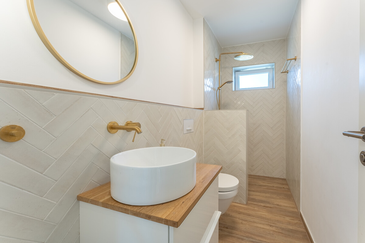 Die Badezimmer im Erd- und Obergeschoss wurden vollständig erneuert und präsentieren sich in modernem Design. Für zusätzlichen Wohnkomfort sorgt die neue Fußbodenheizung im gesamten Erdgeschoss. Im Untergeschoss befindet sich ein großzügiger Hobbyraum, der vielfältig genutzt werden kann – ob als Spielzimmer, Fitnessbereich oder kreative Werkstatt. Ein weiteres Plus: Das Auto parkt bequem in der Garage direkt auf dem Grundstück.