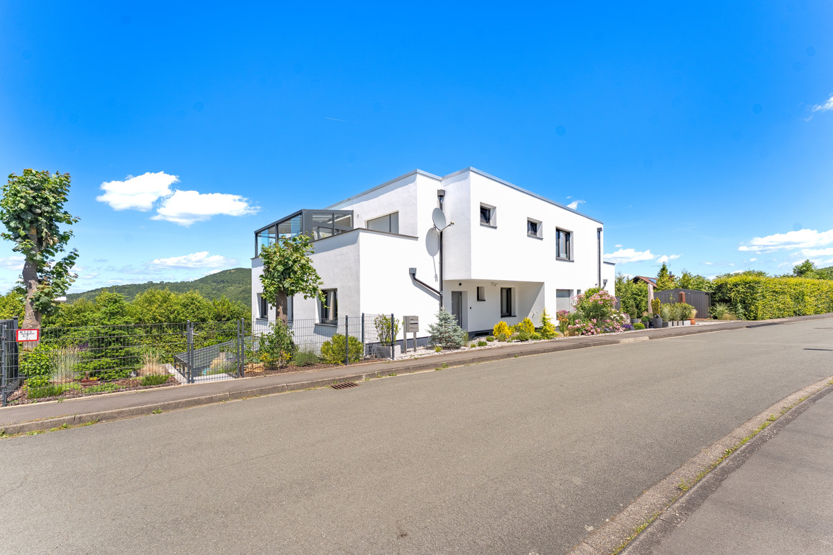 Die ursprünglich als zwei Wohnungen geplante und später zusammengelegte, nun insgesamt gut 167 Quadratmeter große Einheit überzeugt durch Ihre ausgesprochen helle und offene, auf die schöne umgebende Landschaft hin ausgerichtete Atmosphäre. Sie verfügt über insgesamt fünf mit Parkett ausgestattete Zimmer und zwei Badezimmer und ein WC. Da beide Etagen über eine eigene Eingangstür verfügen und jeweils eine eigene Küchenzeile installiert wurde, bietet sich neben der Nutzung als klassische Familienwohnung auch eine jetzt oder später erfolgende erneute Teilung und damit etwa die Nutzung für mehrere Generationen oder als Homeoffice an.