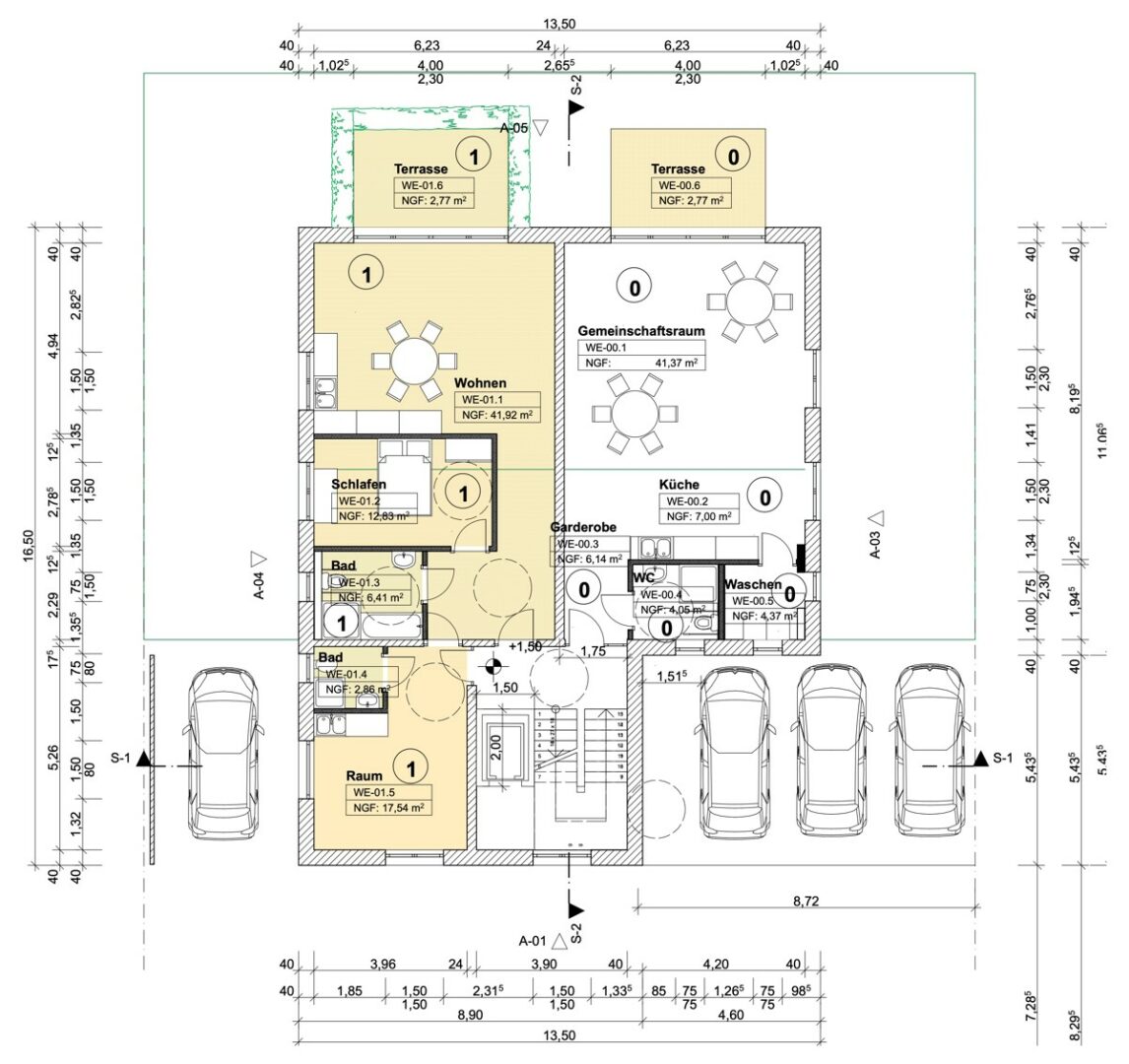 Terrassenwohnung mit Einliegerwohnung, Stellplatz und Gemeinschaftsbereich