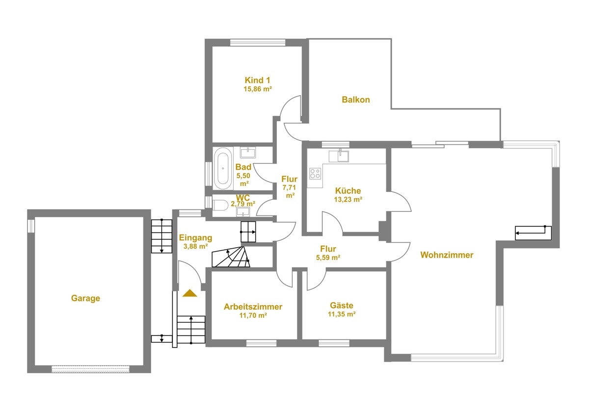 Die Immobilie verfügt über insgesamt ca. 203 Quadratmeter Wohnfläche wurde an einer leichten Hanglage auf einem 1275 Quadratmeter großen Grundstück gebaut. Es erstreckt sich über zwei Etagen und empfängt Sie über das massive Treppenhaus mit einer warmen und aufgeräumten, gemütlichen Atmosphäre. Von hier aus befindet sich in Richtung Süden der offene Wohntrakt mit einem großen und sehr hellen, nach Osten ausgerichteten Wohnzimmer. Hier gibt es auf gut 55 offen geschnittenen Quadratmetern nicht nur genügend Platz für die Familienzeit zu Hause, sondern auch den Zugang zum großen, über die ganze Gartenseite des Hauses gezogenen Süd-Ost-Balkon, auf dem es sich mit Blick über das eigene Grundstück und über das Kasseler Becken herrlich den Tag beginnen oder ausklingen lässt.