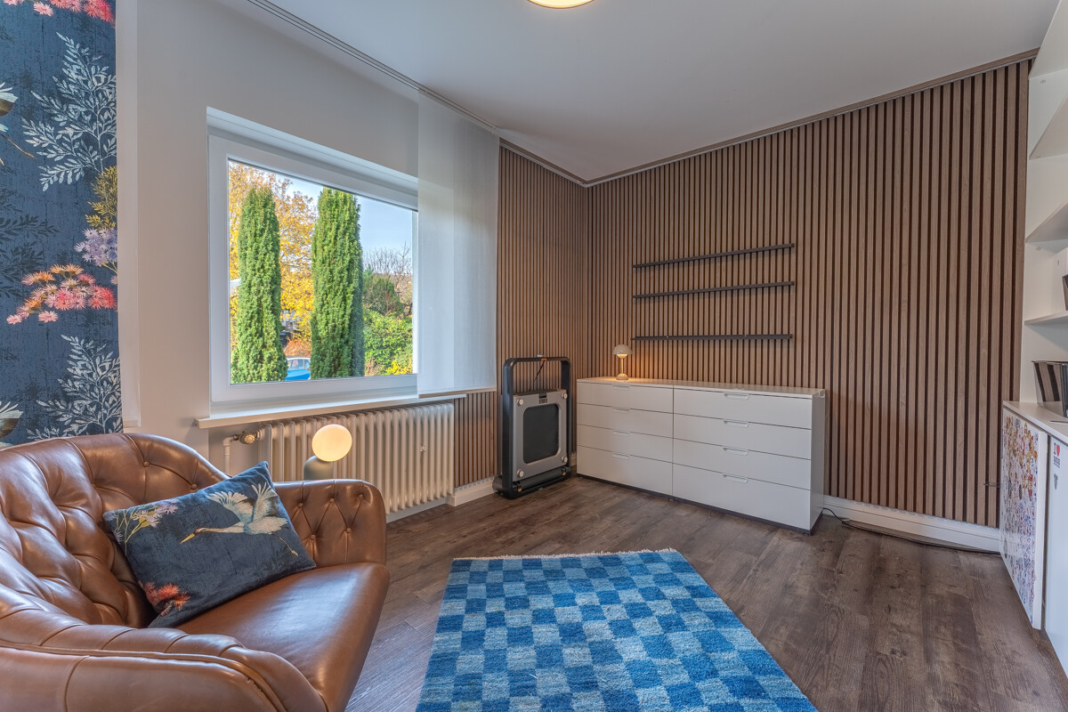 Im östlichen Bereich des Hauses befinden sich im Obergeschoss neben zwei kleineren und einem größerem Zimmer auch das Gäste-WC und ein Duschbad. Im Gartengeschoss, das Sie auch über eine zweite, innenliegenden Treppe erreichen können, verfügt das Haus über insgesamt drei weitere Räume sowie ein zweites großes Badezimmer mit Badewanne und Dusche. Insgesamt dürfen Sie sich so neben dem Wohnzimmer und einem Durchgangszimmer über fünf weitere Räume zur beliebigen Nutzung freuen und in Bezug auf Ihre Möglichkeiten in diesem Haus über alle Lebensphasen hinweg sehr flexibel bleiben.
