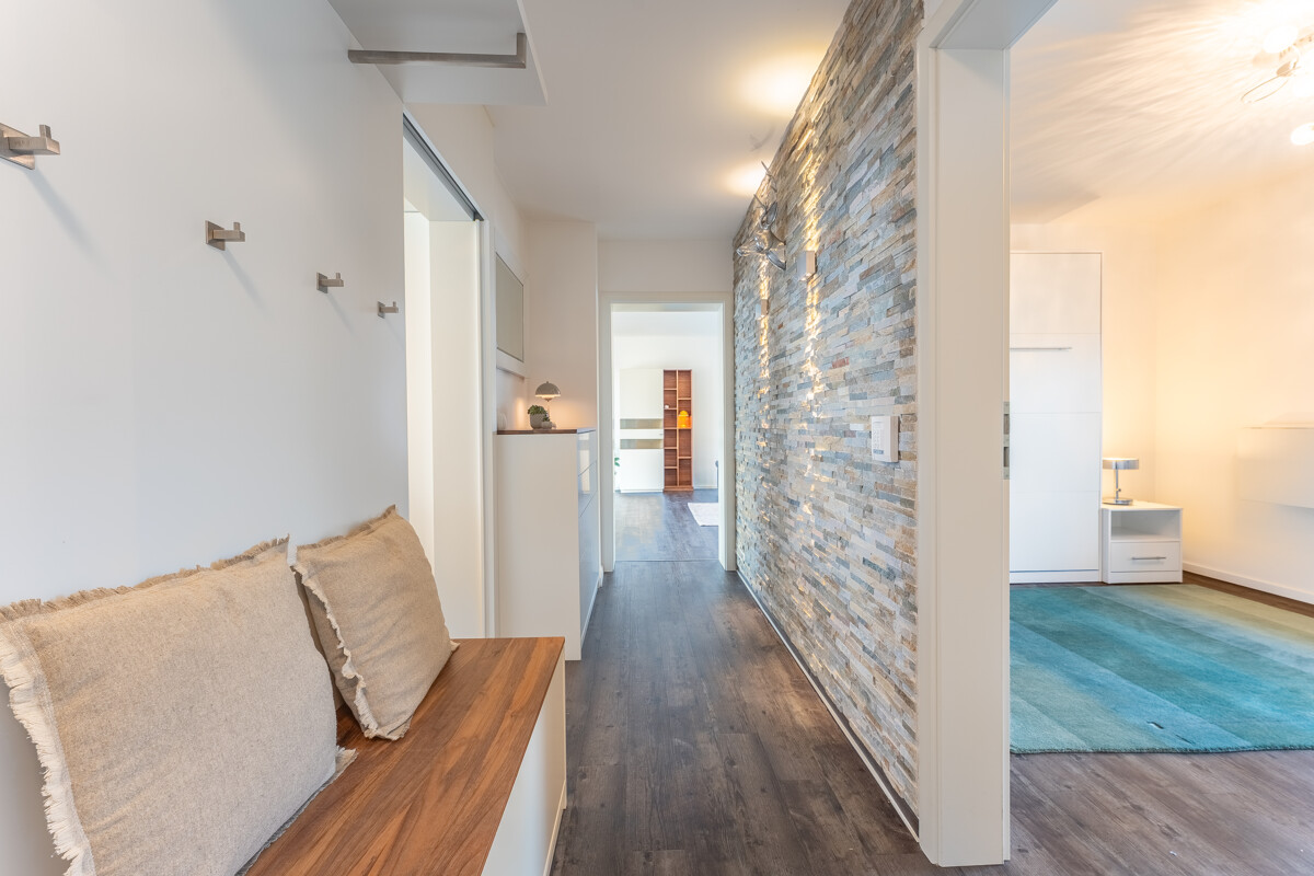 Auch die vor dem Haus liegenden Außenanlagen der Immobilie, allen voran der Vorgarten, die sechs Stellflächen in und vor den Carports und die Zuwegung, wurden im Zuge des Umbaus ebenfalls neu gestaltet und lassen weder Wünsche in Bezug auf Komfort offen, noch in den nächsten Jahren weiteren nennenswerten Handlungsbedarf erkennen.